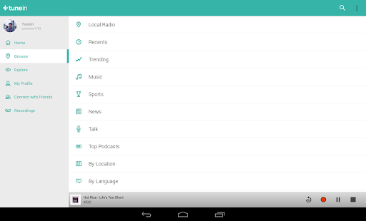 + TuneIn suggests stations, shows and categories to follow, based on your interests